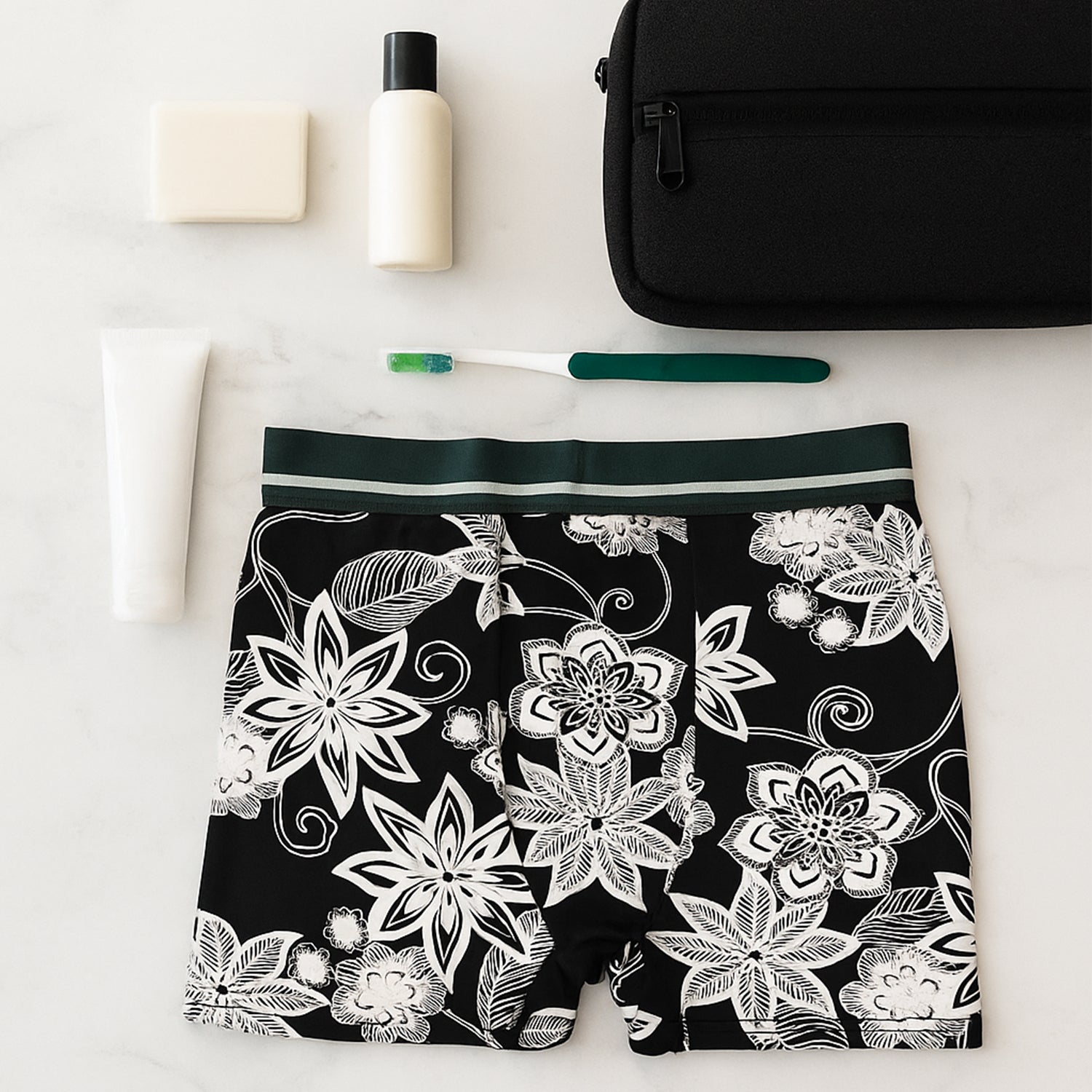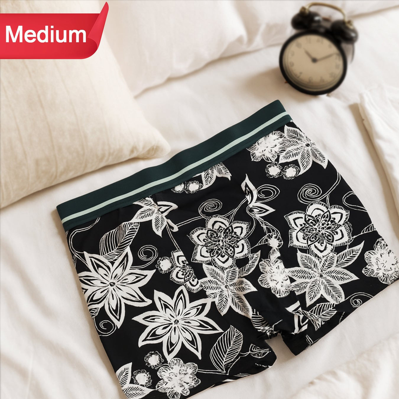 These innerwear essentials are crafted for durability and ease of movement, featuring a stylish monochrome floral print. The fabric is designed to be lightweight and breathable, helping you stay fresh and comfortable whether you're working, travelling, or relaxing at home.