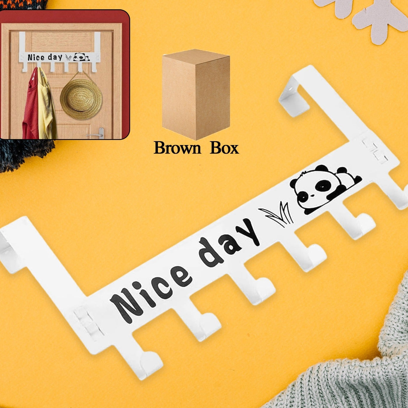 - Heavy-Duty Carbon Steel Door Hook Rack - 6 Hooks, White (1 Pc)