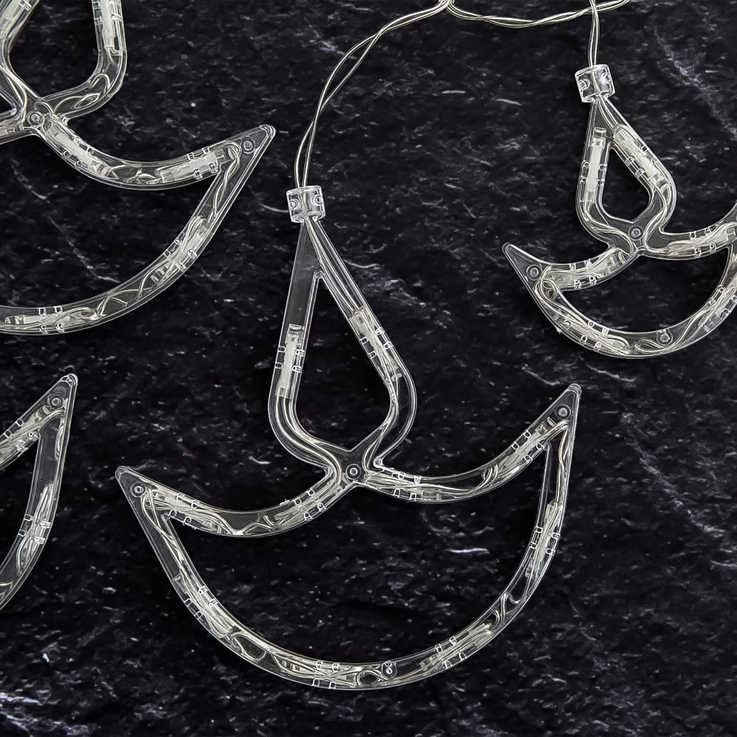 Enhance your home's festive atmosphere with these warm white diya string lights. Perfect for adorning windows, these lights create a beautiful ambiance for celebrations like Diwali, Christmas, and weddings, adding a touch of traditional charm to any event.