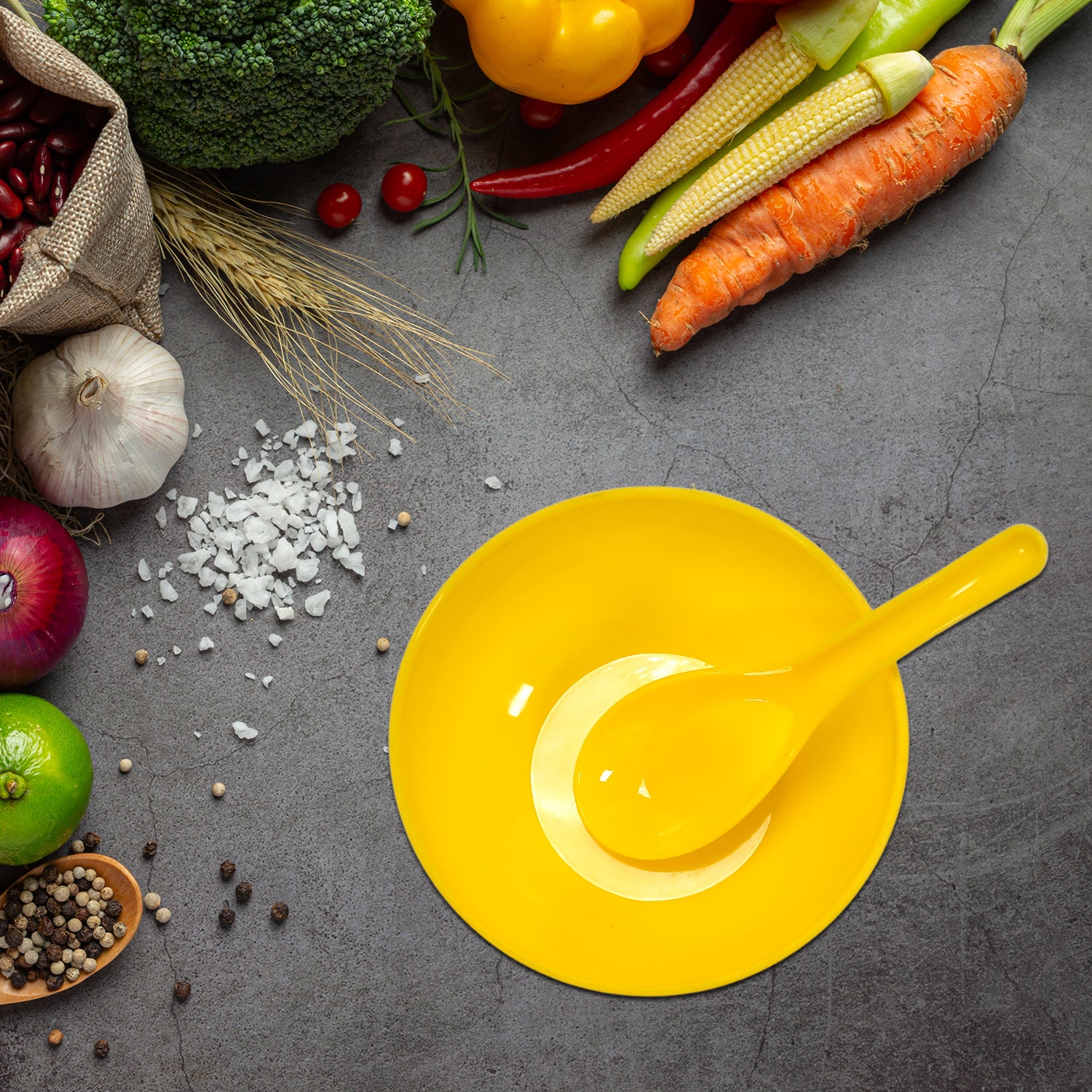 Plastic Soup Bowl and Spoon Set for Kitchen & Home Use - 6 Bowls, 6 Spoons