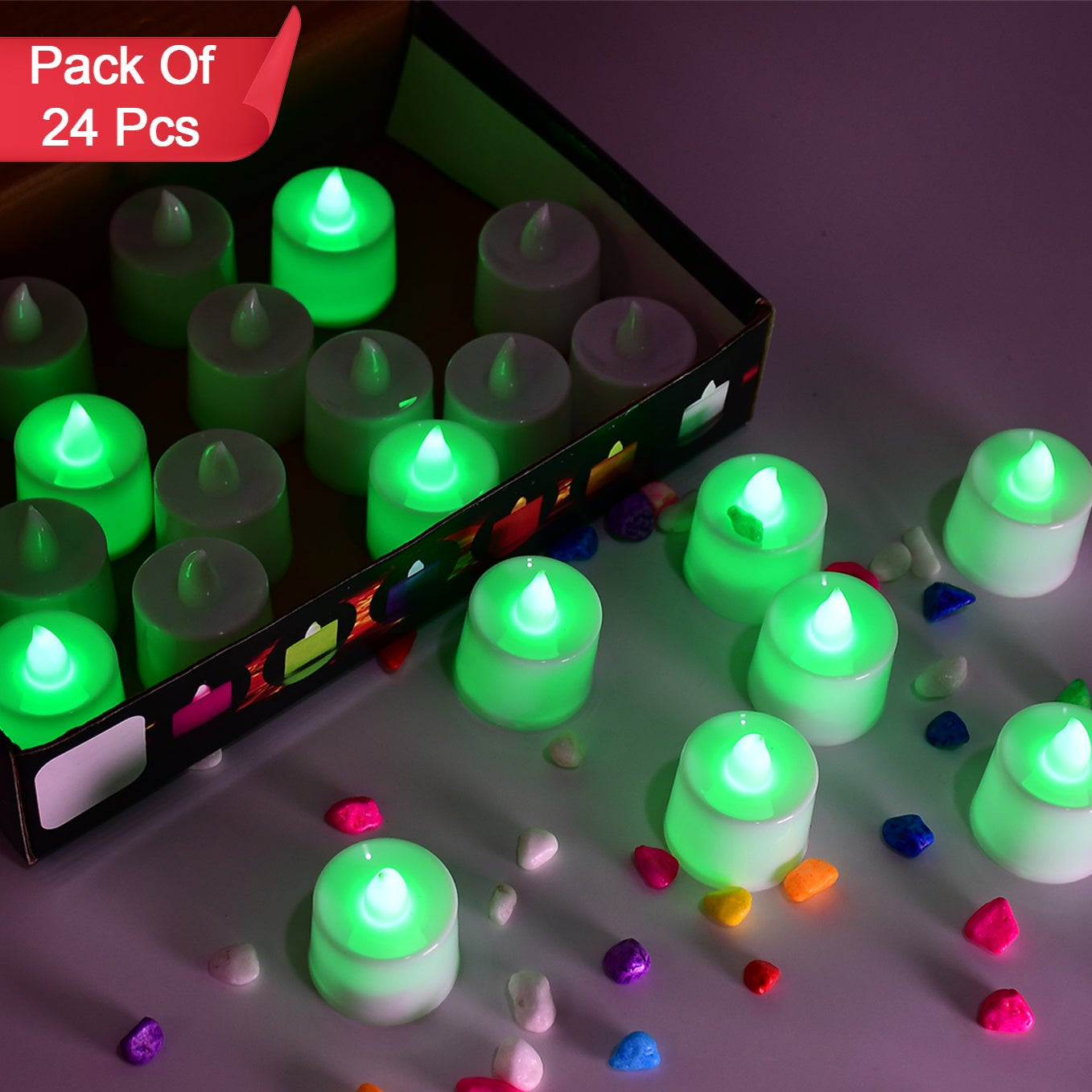 Green LED Flameless Tealight Candles - Pack of 24 for Home Decor