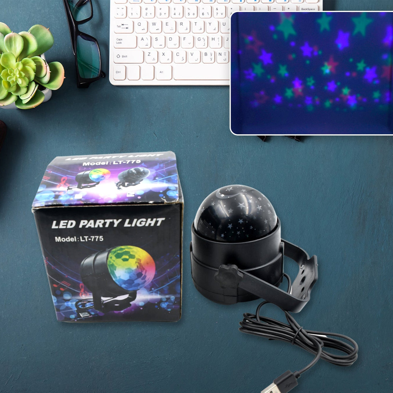 Dynamic Lighting Effects: Projects colourful, rotating patterns to create a party ambiance.