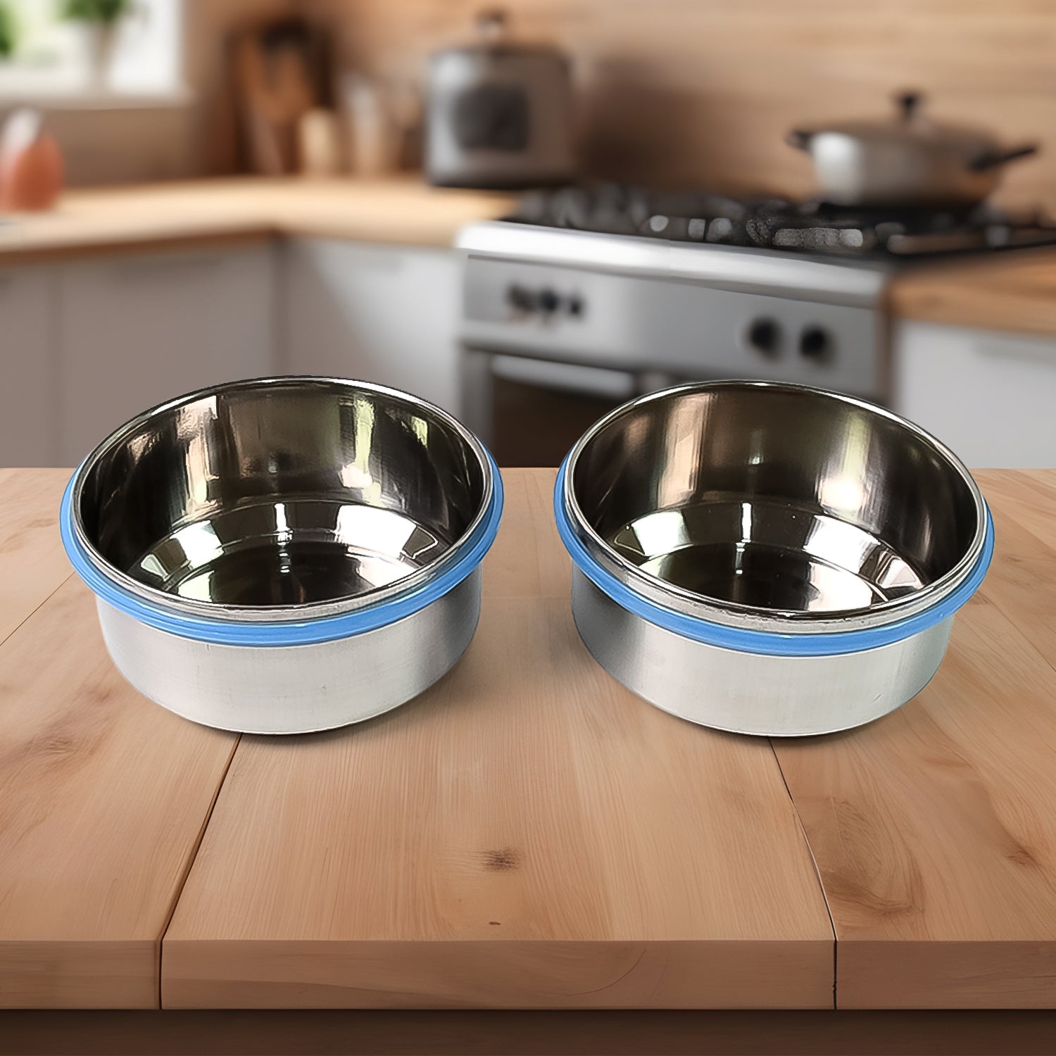 This tiffin box set offers a convenient way to carry your meals to work or school. Made from durable stainless steel, these airtight containers keep food fresh and prevent leaks, making them ideal for daily use. The set includes two containers, an insulated bag, a spoon, and a fork for complete meal portability.