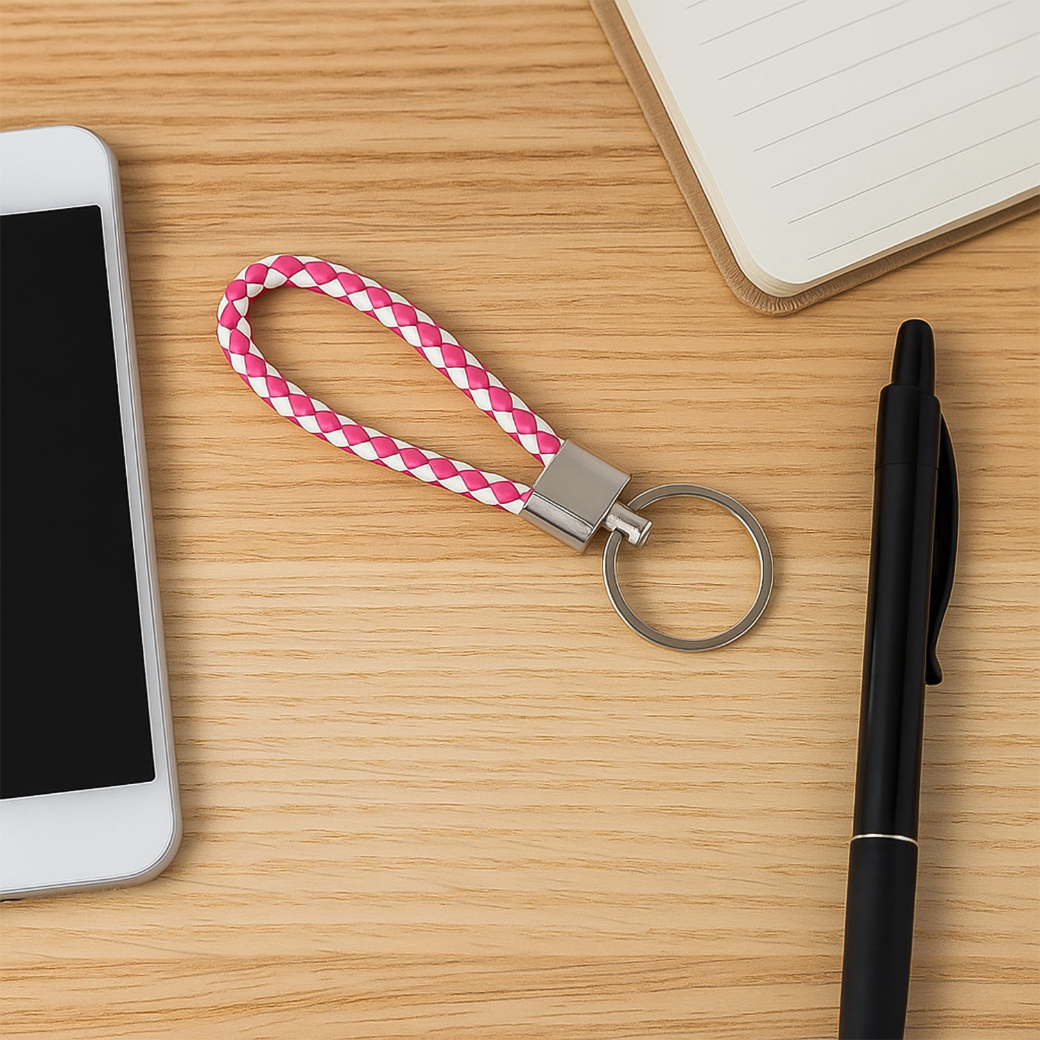 Organise your keys with this stylish braided keychain. It features a durable leather-style strap and a strong metal ring, perfect for keeping your car, bike, home, or office keys secure. The attractive two-tone design adds a modern touch, making it a practical accessory for everyday use.