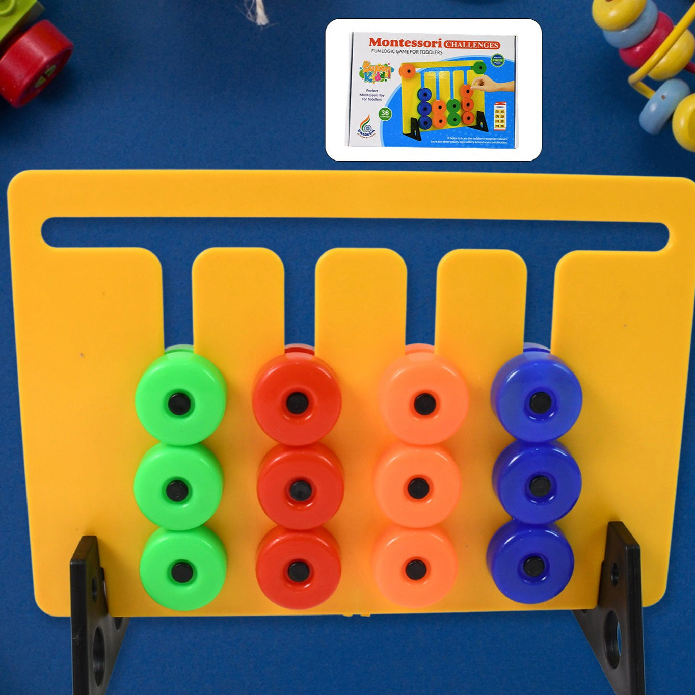 This Montessori slide puzzle is a fun brain teaser designed for children aged 3-6 years. It helps develop colour recognition, pattern matching, and logical thinking skills through engaging gameplay. The set offers 36 unique challenges to keep young minds stimulated.