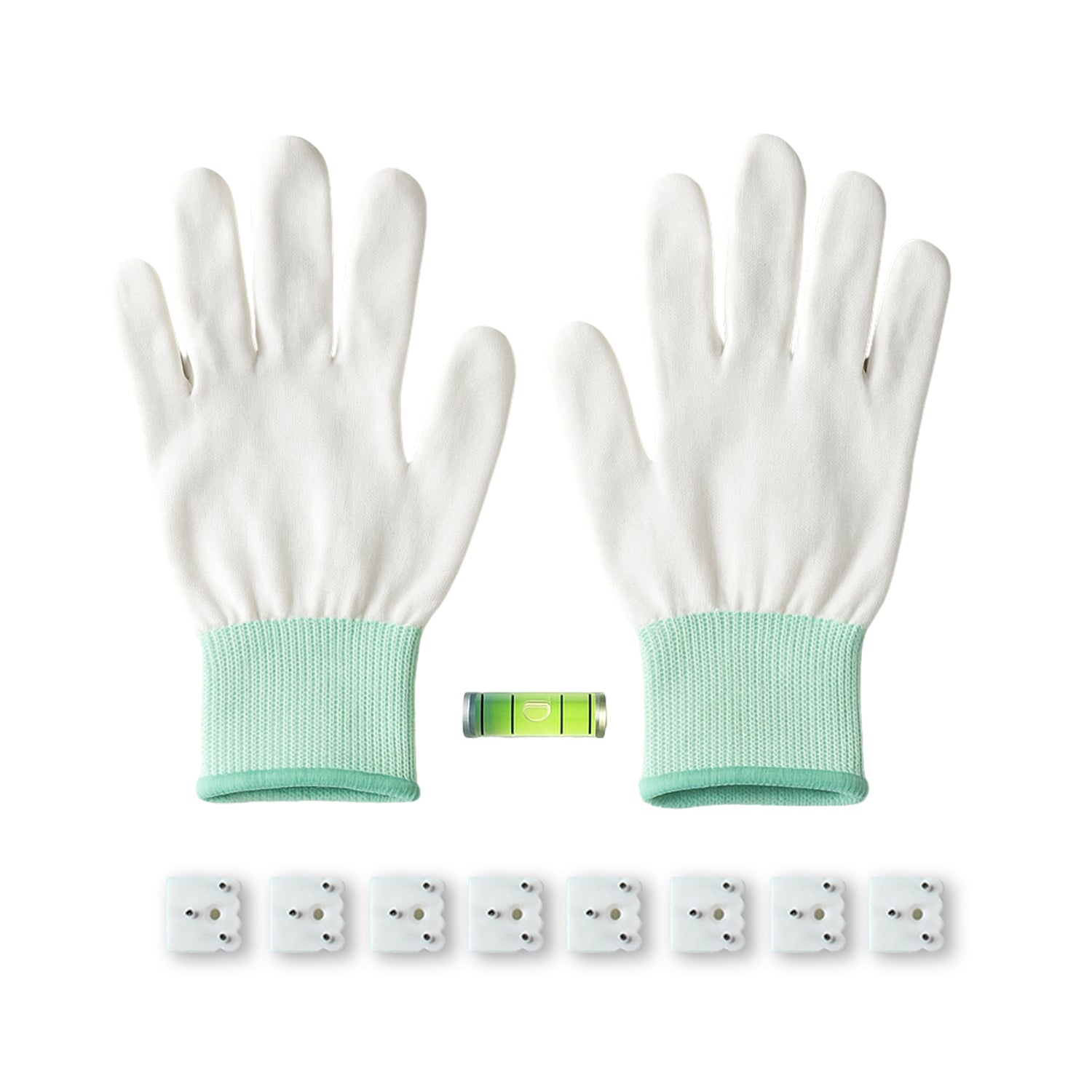 • Complete Set: Contains gloves, hooks, and a spirit level for all your hanging needs.
