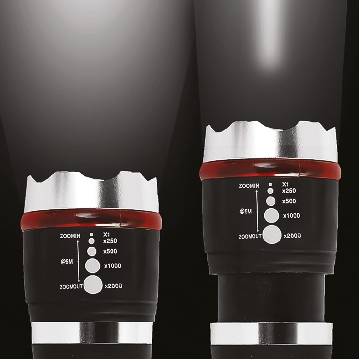 • Bright LED Light: Illuminates surroundings effectively with zoomable focus and multiple modes.