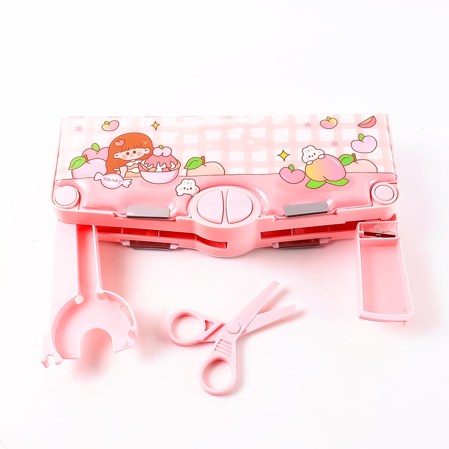 Cartoon Pencil Box for Kids (1 Pc) - Double-Sided Organizer with Sharpener & Magnetic Closure