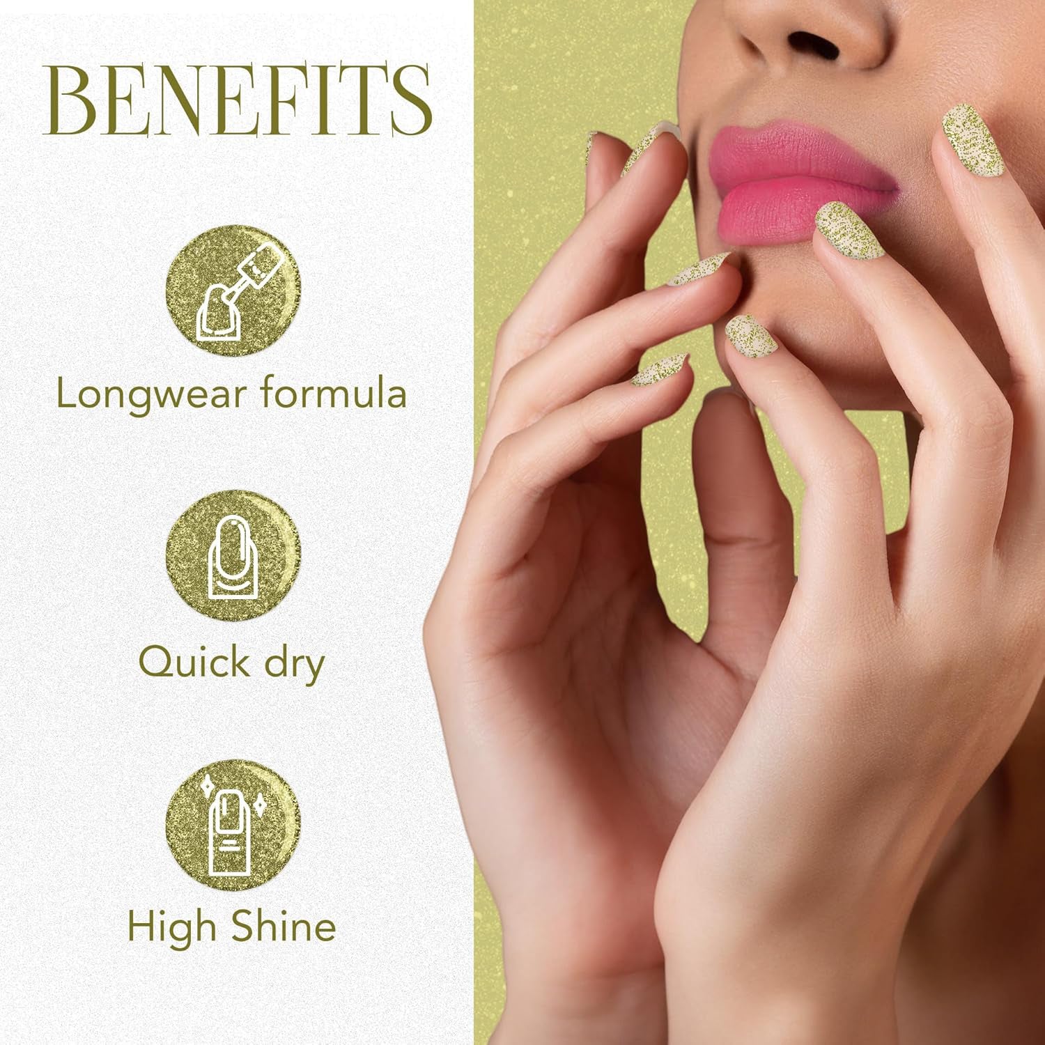 Add a touch of glamour to your nails with this sparkling gold glitter nail paint. It provides a dazzling effect, perfect for making your manicure stand out for special events and celebrations. This polish is designed to enhance your festive look with a radiant shine.