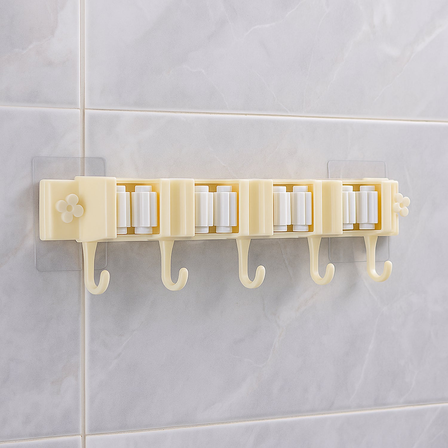 Adhesive Wall Holder for Brooms and Mops with Hooks