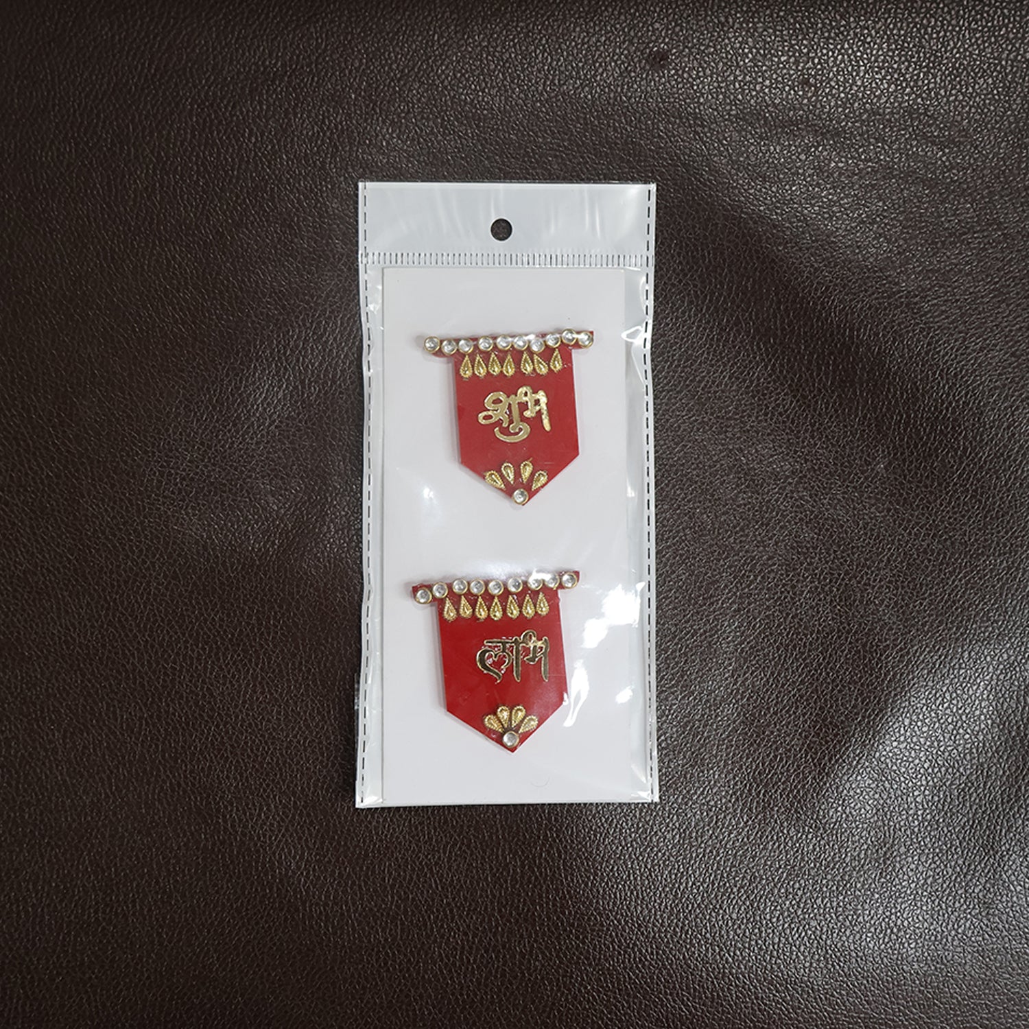 Enhance your home's entryway with this pair of Shubh Labh wall hangings. These traditional decorative pieces feature intricate golden designs and sparkling stone accents on a vibrant red base, symbolizing prosperity and good fortune. They are ideal for adding a touch of auspicious charm to your living spaces, pooja rooms, and during festive celebrations.
