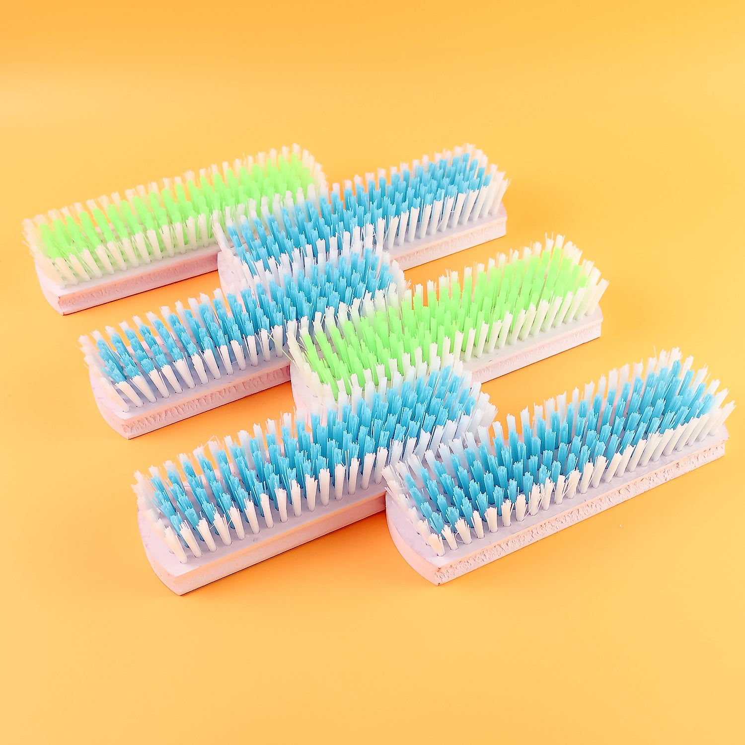 This set includes six versatile cleaning brushes designed for various household tasks. Each brush features robust nylon bristles and a comfortable wooden-finish handle, making them ideal for scrubbing clothes, floors, and other surfaces effectively.